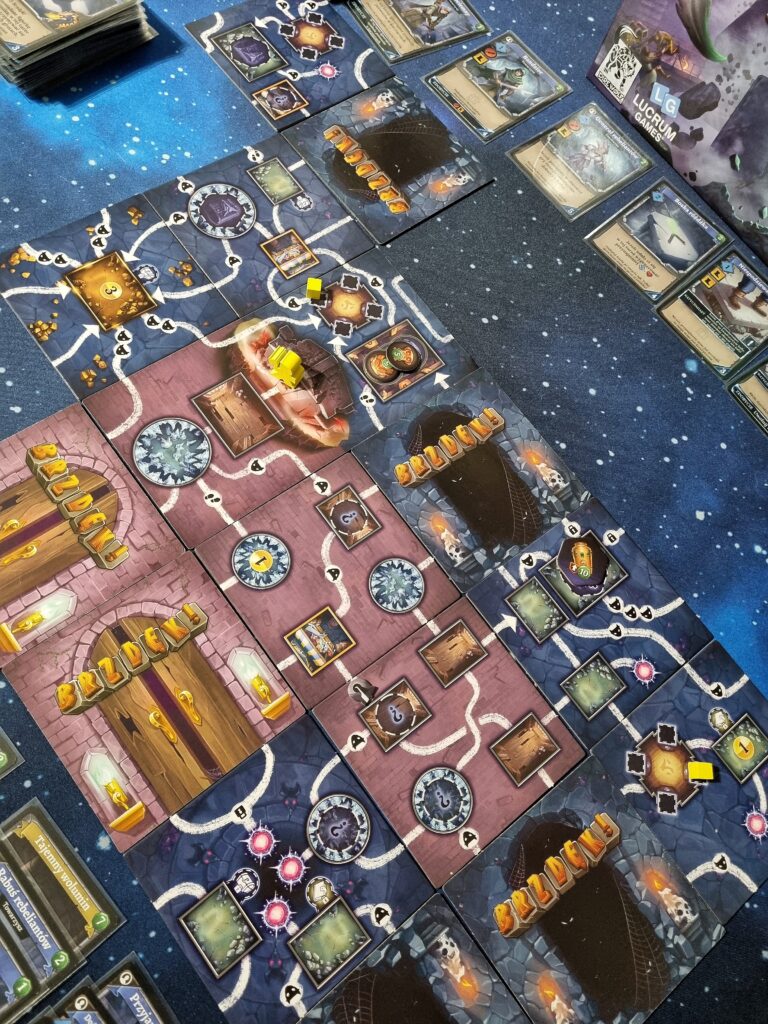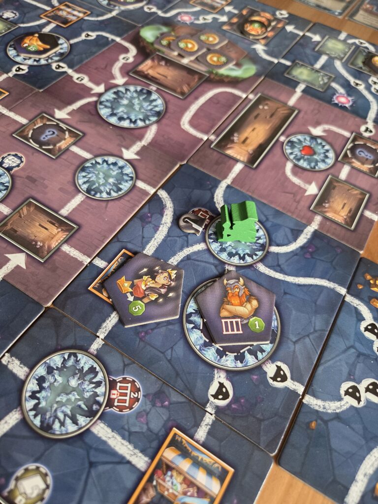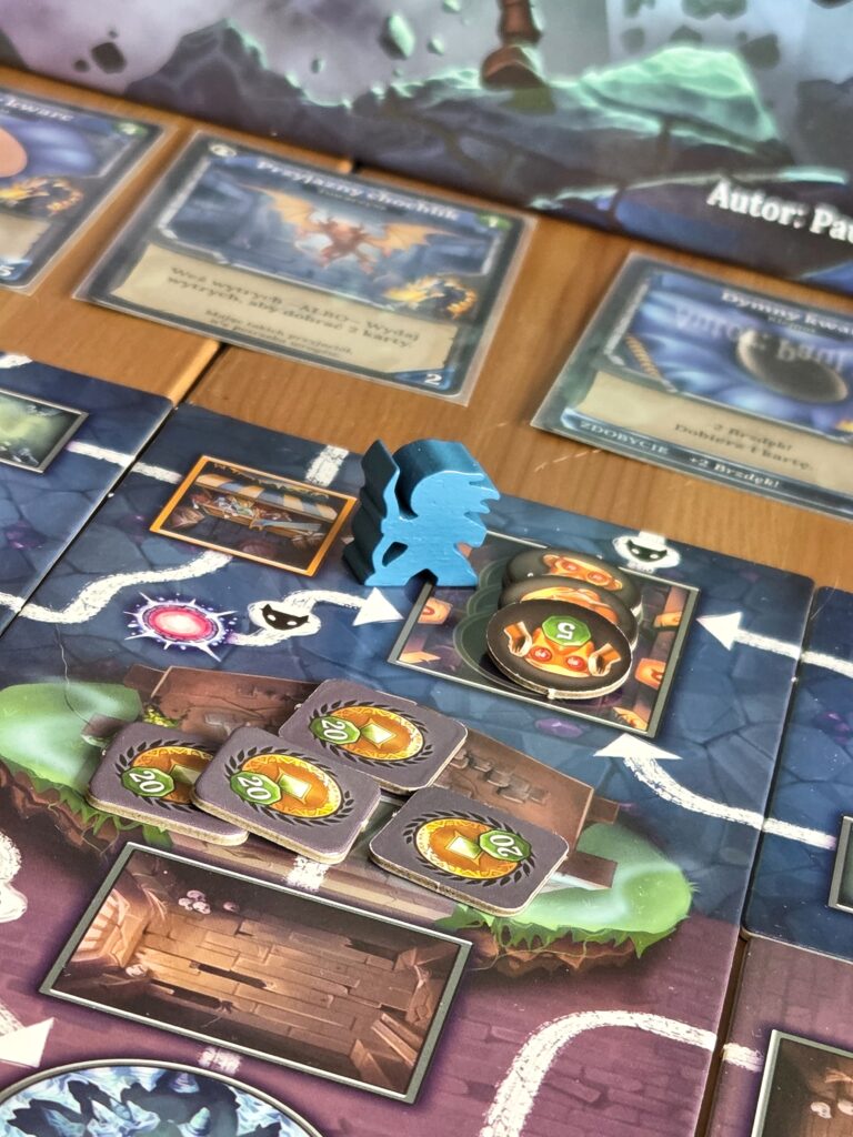 Kolejnym atutem tej wersji jest to, że nie wiemy co będzie czekało na nas za każdym zakrętem. Bo tym razem sami będziemy rozbudowywali nasze lochy. To rozwiązanie z modularną planszą jest to prostu świetne. Zdecydowanie czegoś takiego brakowało mi w pierwszym Brzdęku gdzie miałem uczucie, że za każdym razem wybierałem podobne trasy. Tutaj jak gram to aż z ekscytacją czekam na odkrycie nowych pomieszczeń licząc na zdobycie bogactw Zombie Smoka. Przez to też każda rozgrywka była dla mnie zupełnie inna.
