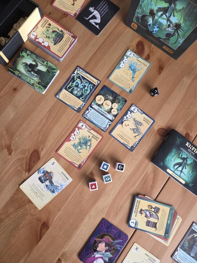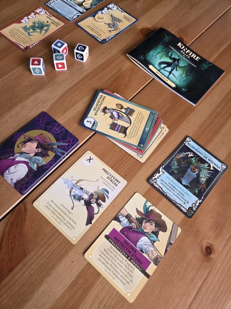 Kinfire Delve Laboratorium Bezdusznego okazał się takim miłym zaskoczeniem. Bo jest to emocjonująca podróż, w której razem schodzimy na dno studni w celu wypędzenia jej głównego lokatora. Razem zagrywamy karty i razem wspieramy się podczas realizacji różnych wyzwań. Karty przyjemnie się combują ze sobą, a kości wystawiają na próbę nasze szczęście oraz naszych znajomych.