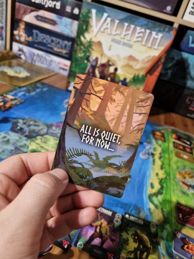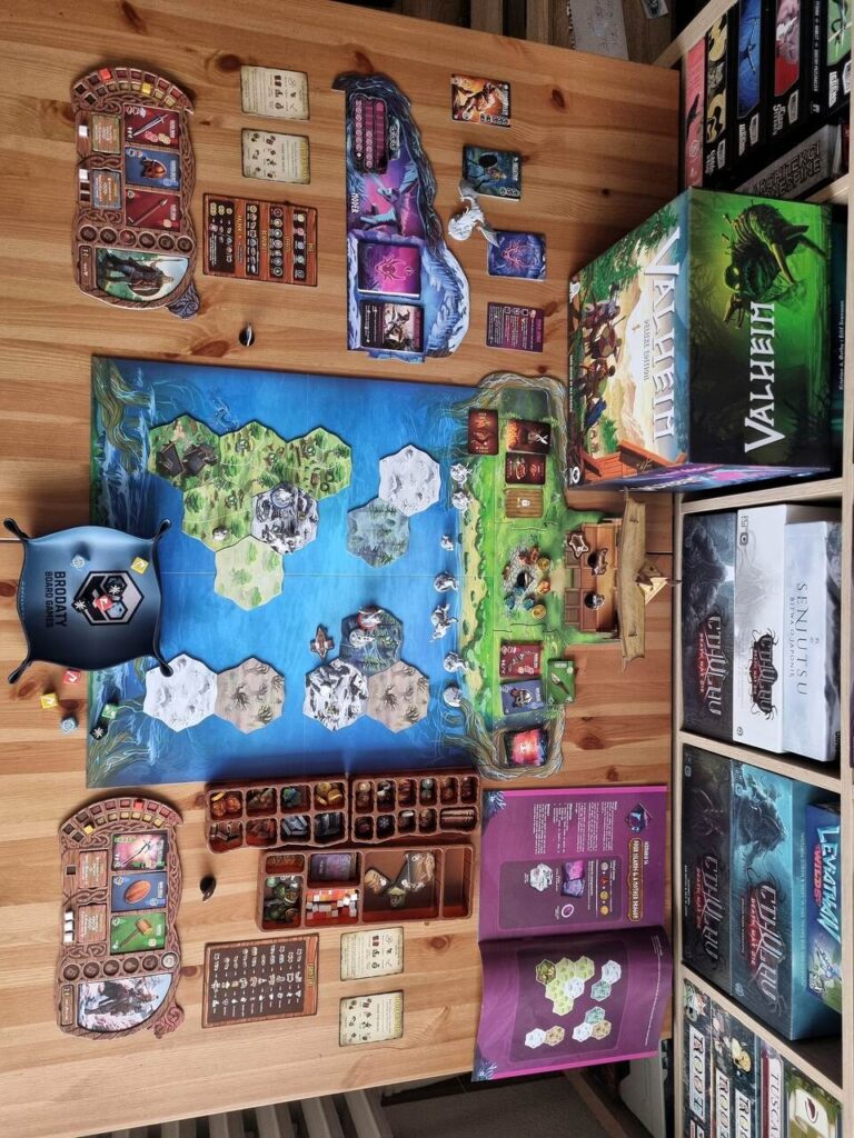 Valheim is a cooperative game in which Vikings must fight mythical beasts and overcome other challenges to win the favour of Odin. It is one of a series of games in which you must craft, explore and extract better and better resources in order to expand your home and forge stronger equipment. You can find dozens of such games in STEAM sales. However, this is quite rare on the board.