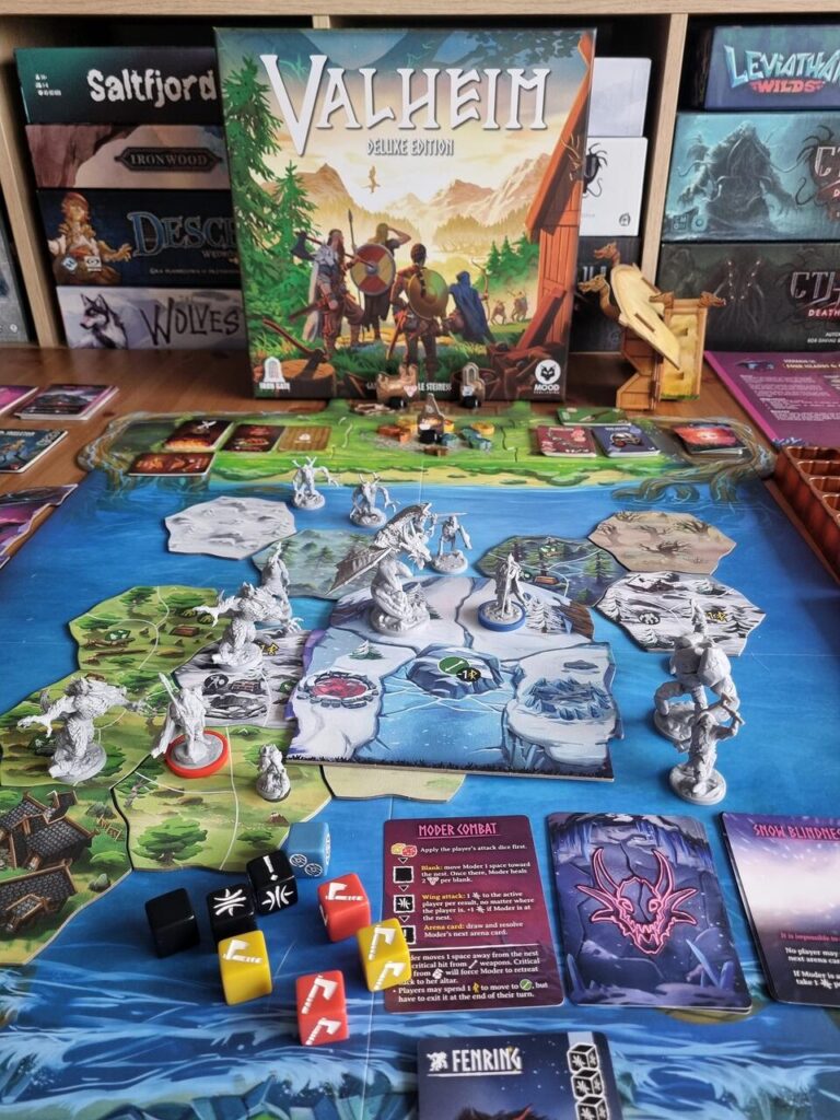 Valheim to kooperacyjna gra, w której wikingowie walczą z mitycznymi bestiami oraz innymi przeciwnościami losu po to by zdobyć względy Odyna. Jest to gra z serii tych gier gdzie trzeba craftować, explorować, wydobywać coraz to lepsze surowce tak byśmy mogli rozbudować nasz dom oraz wykuć mocniejszy ekwipunek. Na STEAMowych wyprzedażach można znaleźć dziesiątki takich gierek. Jednak na planszy zdarza się to dość rzadko.